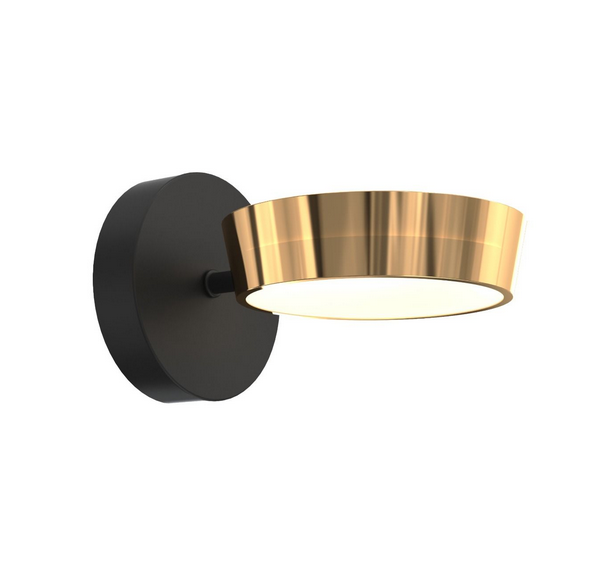 Stilingas, modernus sieninis LED šviestuvas LARA – juodos bei aukso spalvos metalinio korpuso , difuzorius – plastikinis.